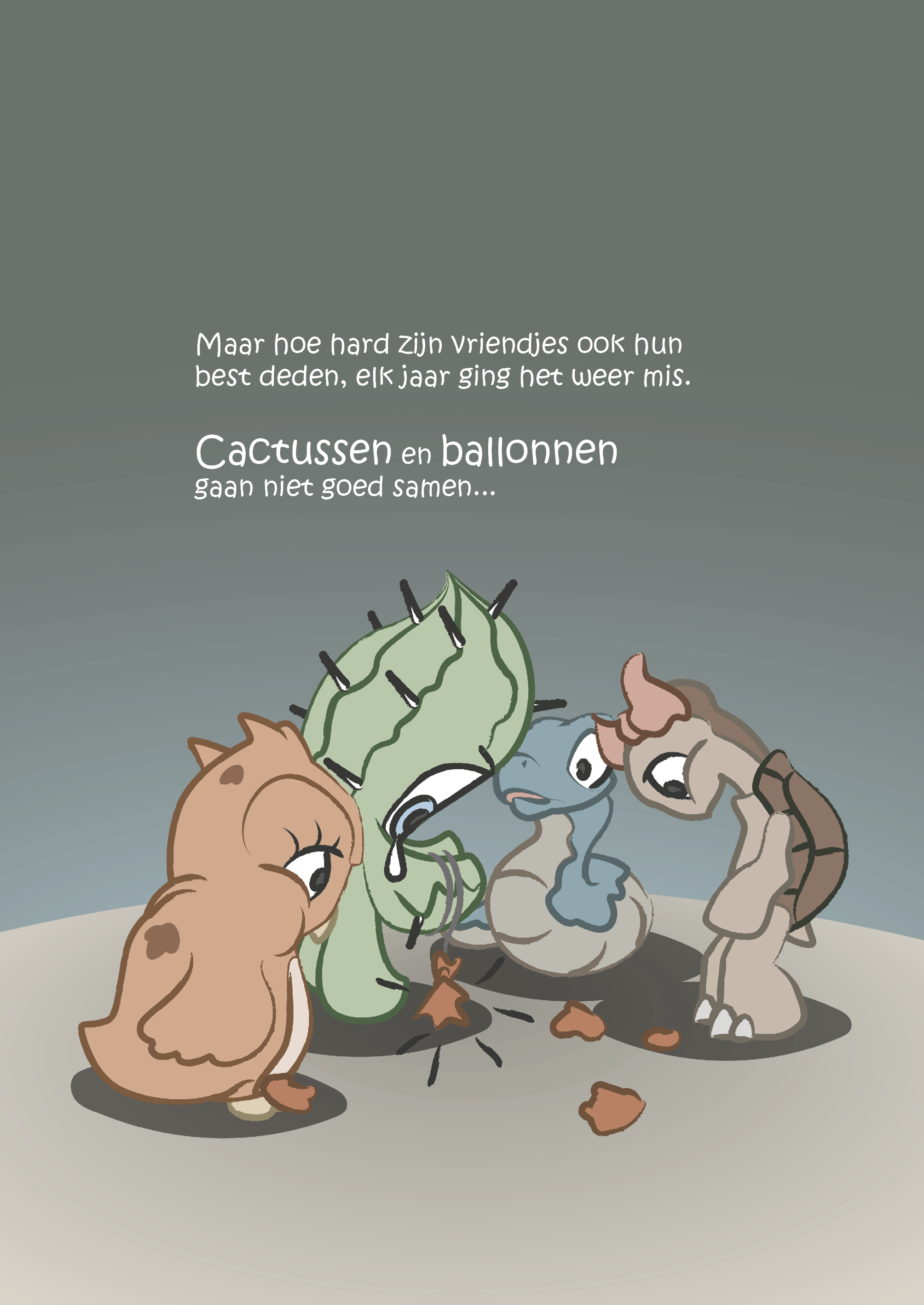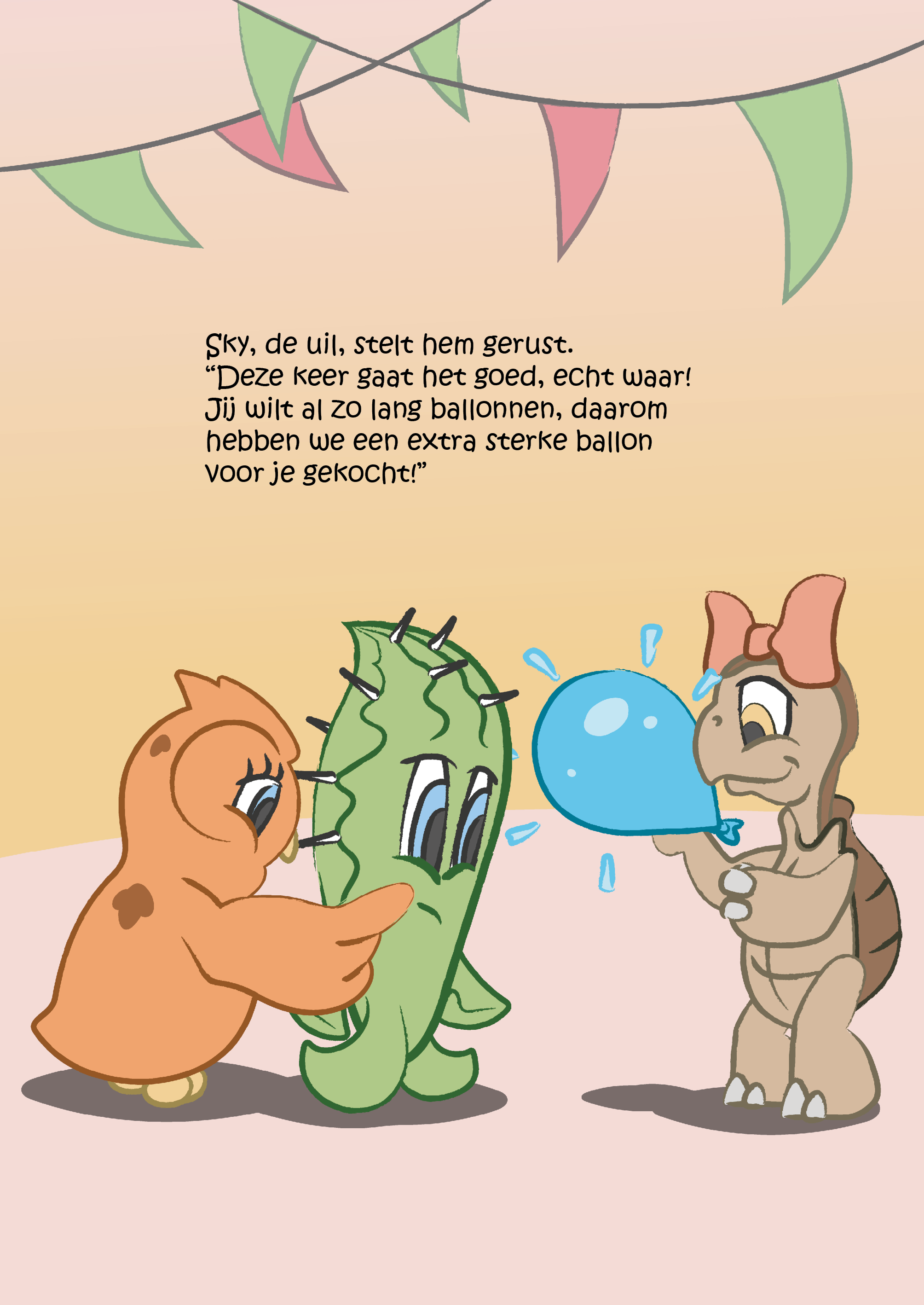 Dit is het verhaal over de kleine cactus Spike, die al zijn hele leven niets liever wil dan spelen met ballonnen. Maar ja, cactussen en ballonnen gaan niet goed samen… Het is maar goed dat Spike zulke lieve vriendjes heeft die hem helpen om zijn droom waar te maken.